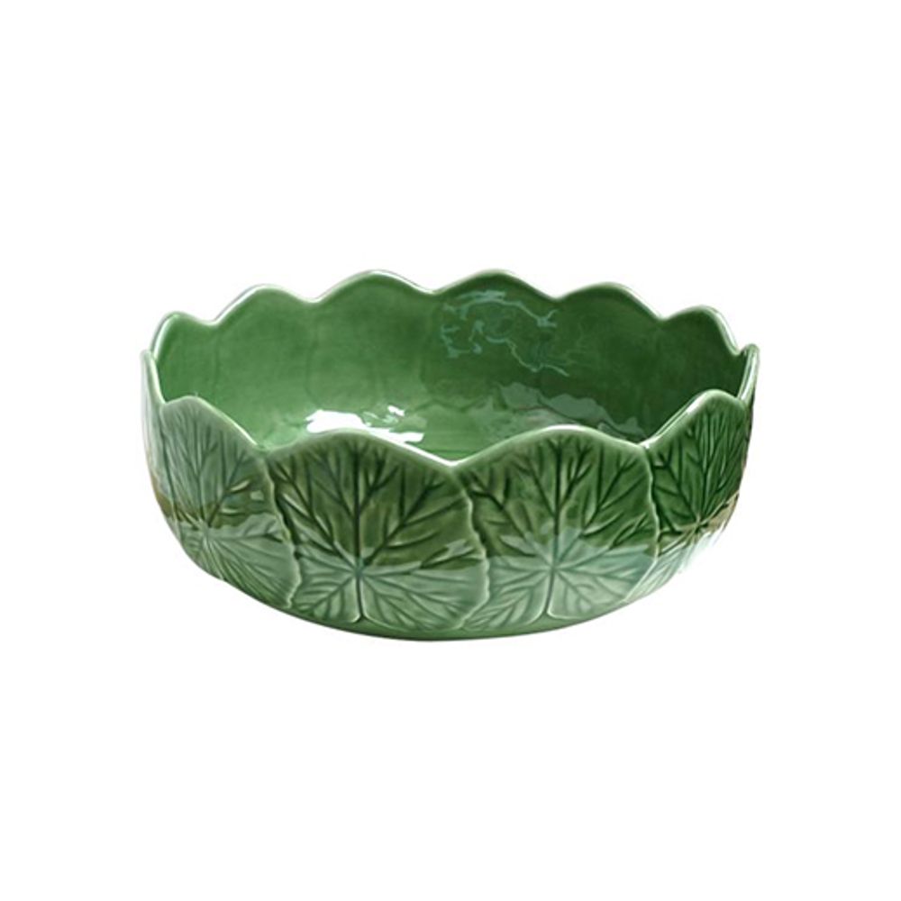 Bowl de servicio (27 cm) colección Geranio Verde de Bordallo Pinheiro. Vajilla artesanal portuguesa con relieve botánico. Exclusividad en Carmiña Villegas.