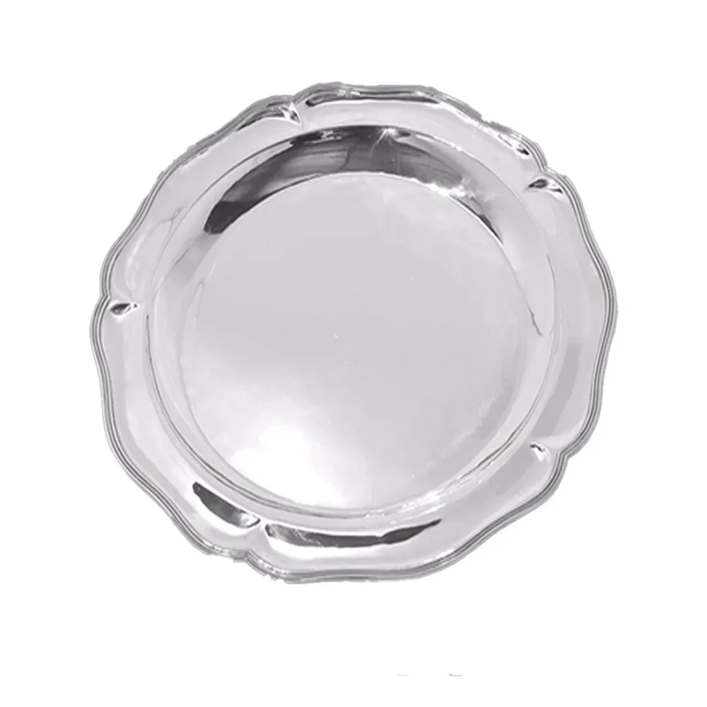 La bandeja Diámetro de 44 cm de Greggio es una pieza que encarna la elegancia clásica de la platería italiana con un diseño distintivo y sofisticado. Elaborada en silver plate, esta bandeja para servir destaca por su delicado borde ondulado, que aporta movimiento y un carácter refinado a cada presentación.