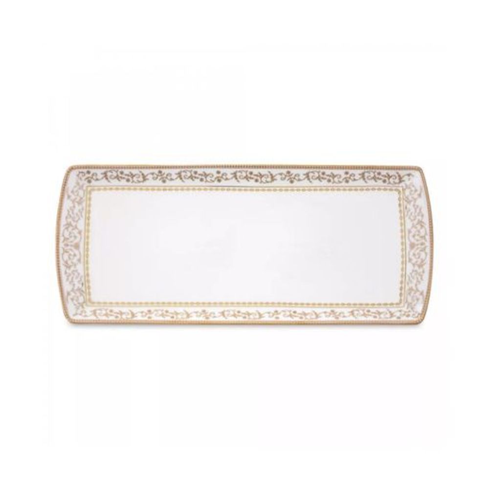 Bandeja rectangular de 35 × 15 cm en porcelana de vajilla italiana, ideal para servir entradas, postres o acompañamientos con una presentación elegante. Su diseño fino y resistente aporta estilo a cualquier mesa y combina fácilmente con otras piezas de la colección y viene en caja, perfecta para regalo o almacenamiento.