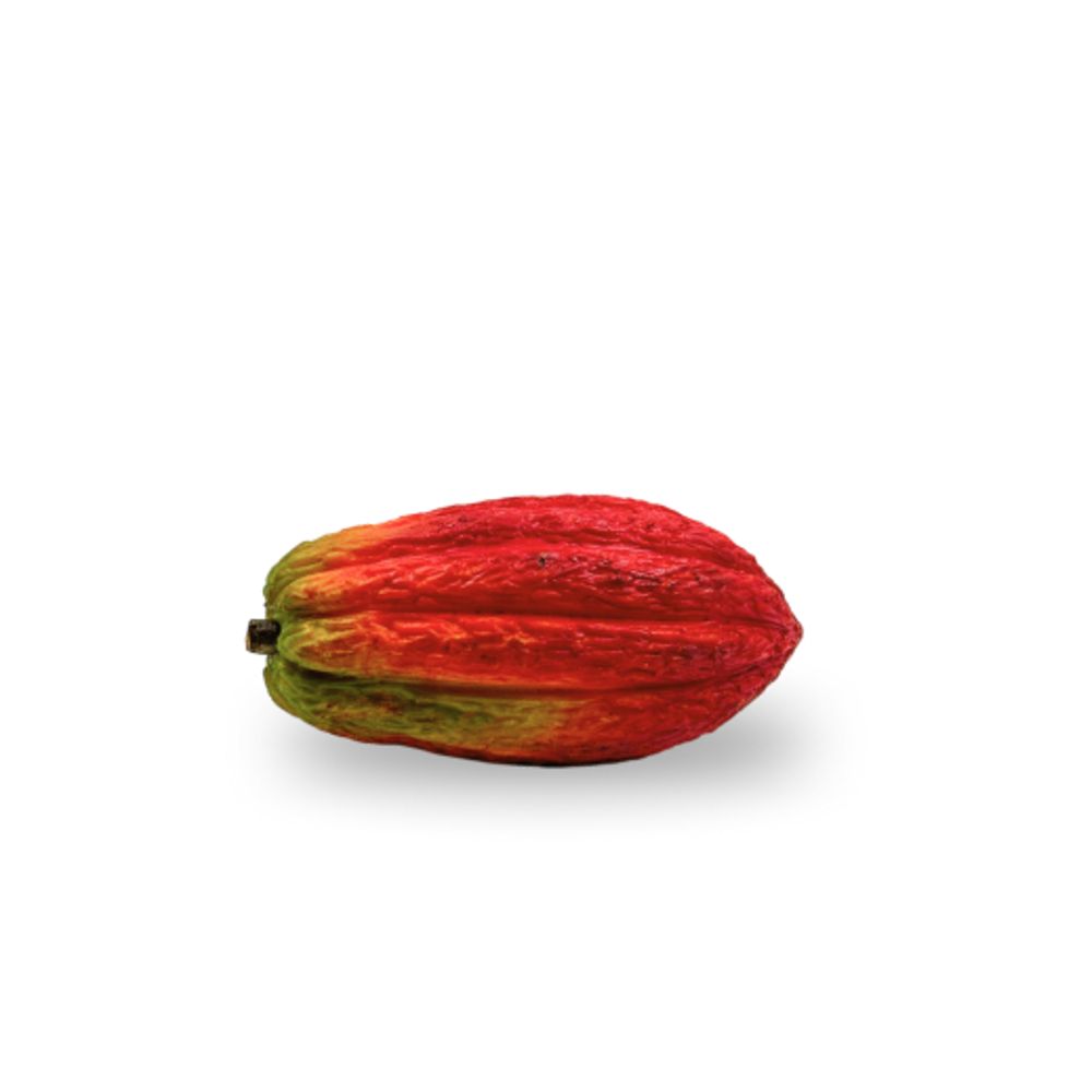 Cacao mediano decorativo con forma alargada y superficie texturizada que resalta los surcos naturales del fruto. Sus tonos cálidos aportan un acento exótico y sofisticado, ideal para realzar fruteros, bandejas o vitrinas con el estilo distintivo de Fruver Carmina Villegas.