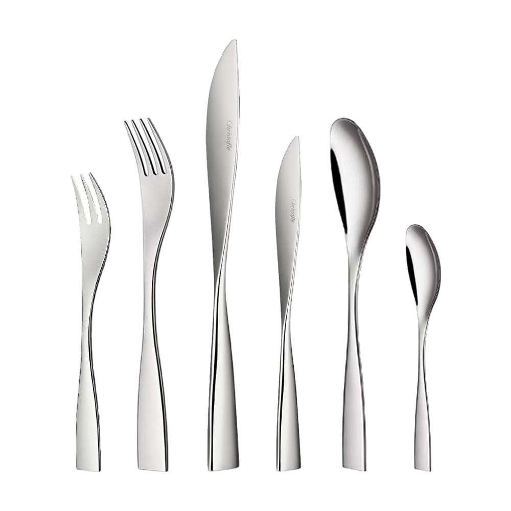 Christofle Caja de 36 piezas, servicio para 6 personas de la Colección Squeeze en Acero 18/10, compuesta por Cuchara, Tenedor y Cuchillo Mesa, Tenedor y Cuchillo entradas o postre y Cuchara para postre/ café.