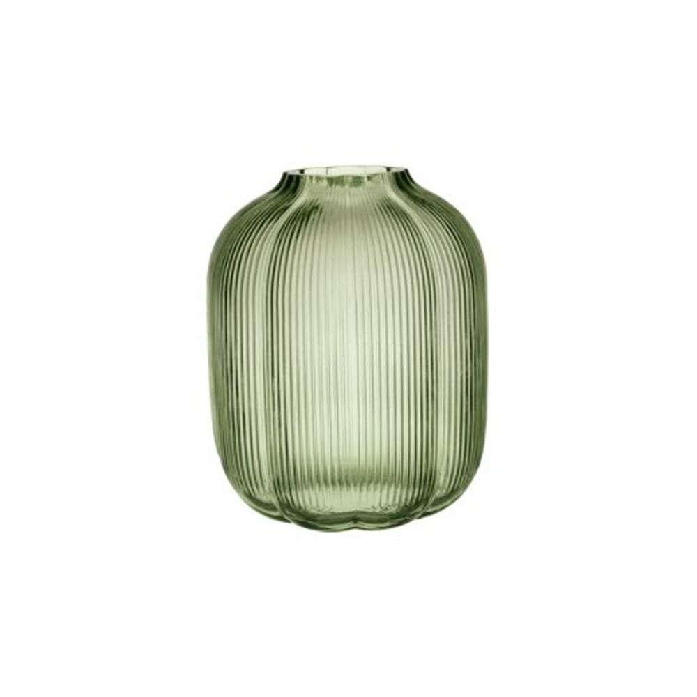 Jarron Fleur Verde 19 Cm, cautiva con su superficie acanalada y sus suaves líneas. Su forma orgánica, inspirada en la naturaleza, le confiere la apariencia de una pequeña escultura, incluso sin flores, sutil pero distintiva.