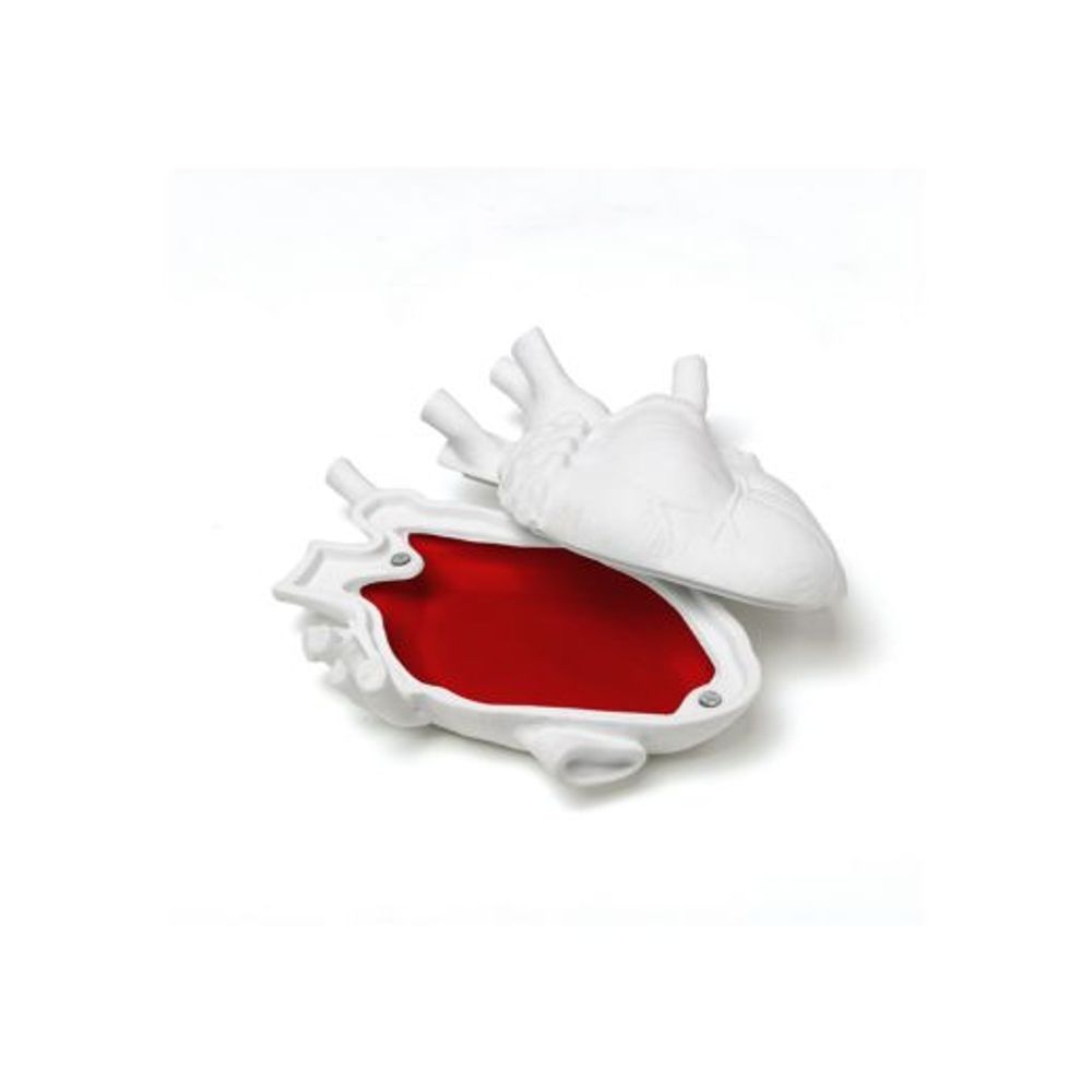 El joyero Love in a Box de Seletti reproduce con detalle la forma de un corazón anatómico, inspirado en el icónico Love in Bloom. Fabricado en fina porcelana blanca y con cierre magnético, es perfecto para guardar pequeñas joyas o para regalar.