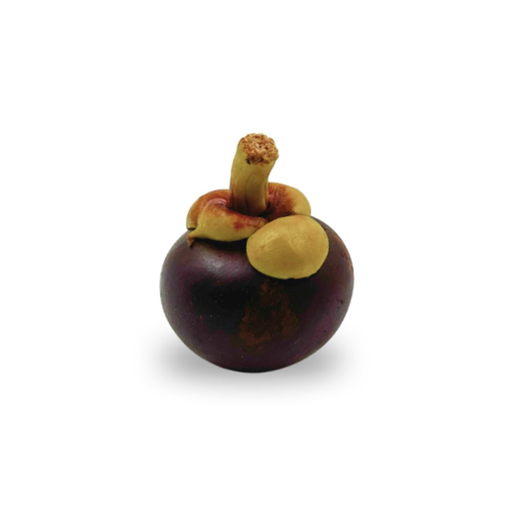 Fruta decorativa de acabado ultrarealista, con detalles que replican la textura y el característico tono profundo del mangostino. Parte de la línea Fruver de Carmina Villegas, es ideal para vitrinas, mesas decorativas y ambientes que buscan un toque natural y sofisticado.