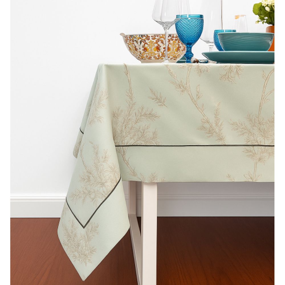 Mantel Lino Maple Azul Celeste 8 Puestos 170x280 Cm Costa Nova, la composición es de 50% lino y 50% algodón poliéster, apto para lavadora 30° en ciclo delicado, no utilizar secadora, no usar blanqueador, planchar húmedo y aplicar almidón.