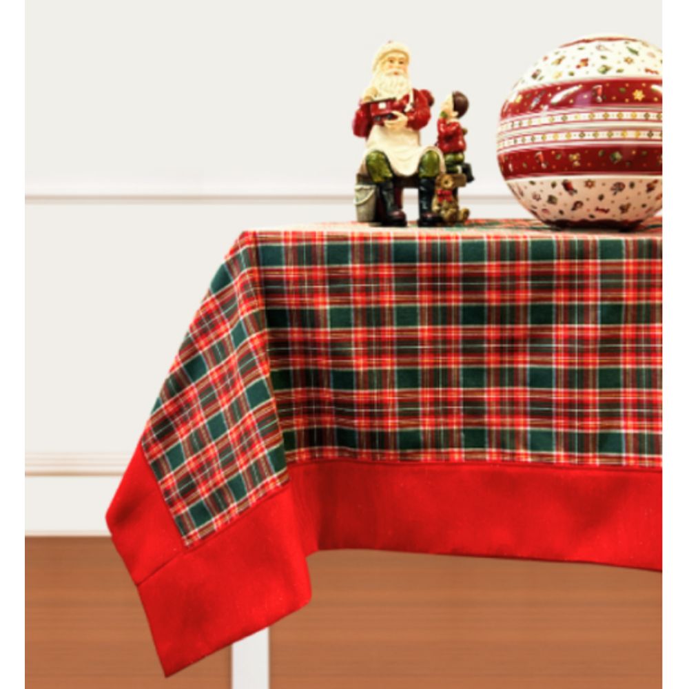 Mantel con diseño tartán en tonos rojo y verde, ideal para ambientar la mesa durante la temporada navideña. Su patrón clásico aporta calidez y tradición, creando una atmósfera festiva y elegante. Con medidas de 170x280 cm, es perfecto para mesas medianas y grandes.