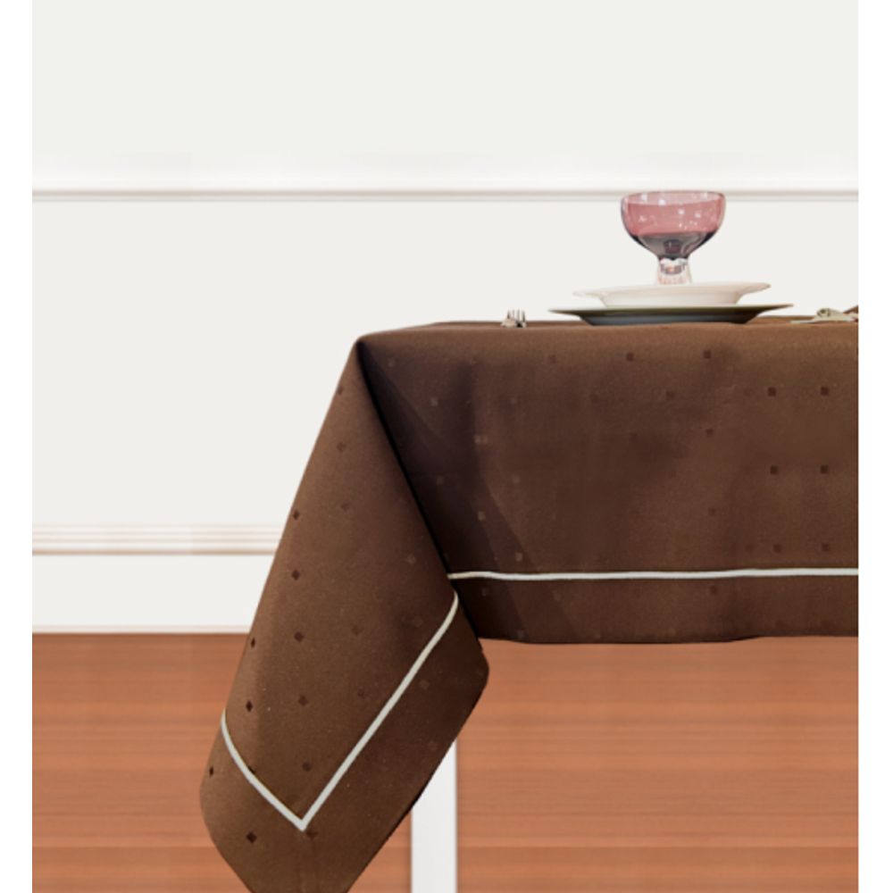 • 6915 Mantel Satin Cuadritos Chocolate 8 Puestos 220x300 Cm Carmina Villegas