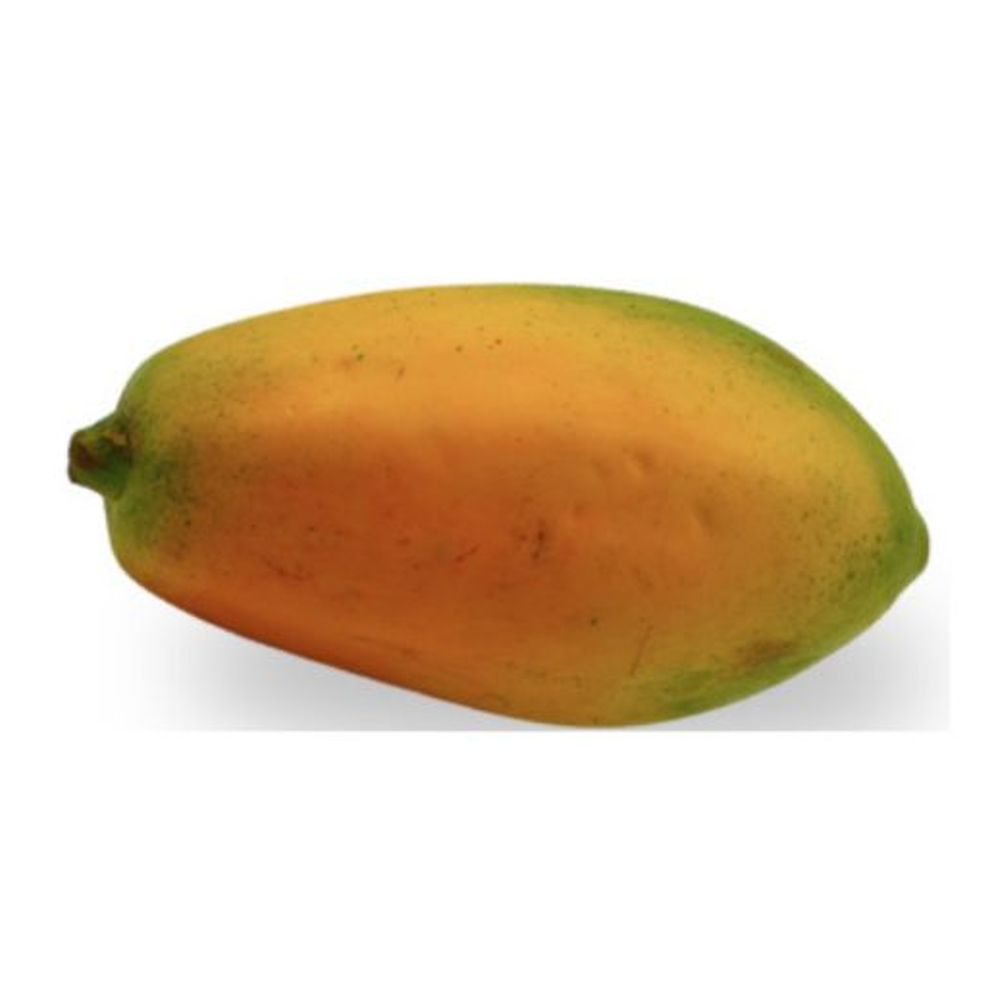 Papaya Decorativa Fruver Carmina Villegas de tamaño, con tonalidades amarillas y anaranjadas que evocan su madurez, y textura suave que resalta sus rasgos naturales. Su presencia aporta un aire cálido, exótico y vibrante, ideal para decorar fruteros, mesas o espacios que busquen un toque tropical.