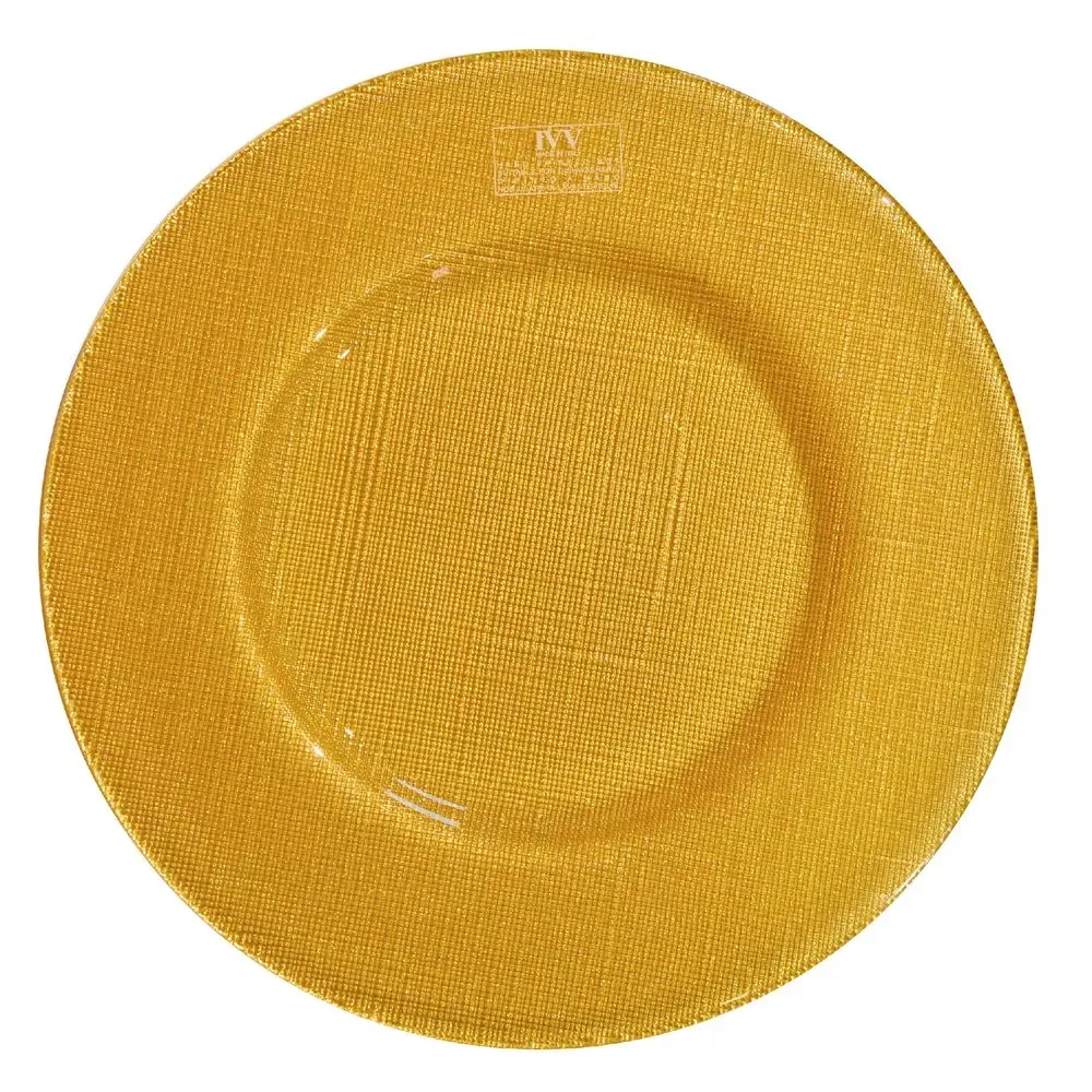 El plato sitio Kerala Gold de 34 cm de IVV es una pieza que refleja la elegancia contemporánea a través de un diseño luminoso y refinado. Elaborado en cristal con un delicado acabado escarchado en tono dorado, aporta una textura sutil que captura la luz y realza cada montaje con sofisticación.