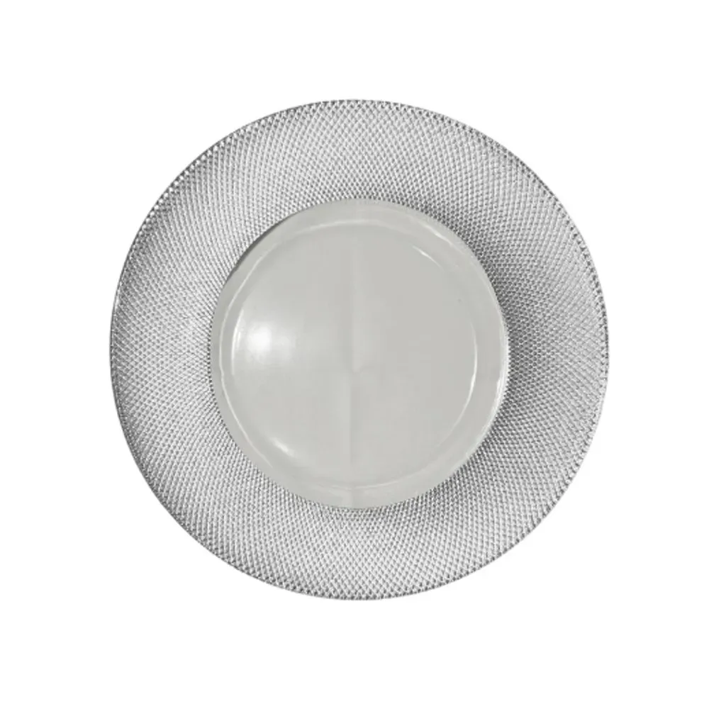 Añade un acento de elegancia y distinción a tu mesa con este plato sitio-base plateado de 33 cm en vidrio de Carmiña Villegas. Su acabado brillante aporta una luminosidad sofisticada que realza la presentación de la vajilla, creando composiciones armoniosas y de gran impacto visual.