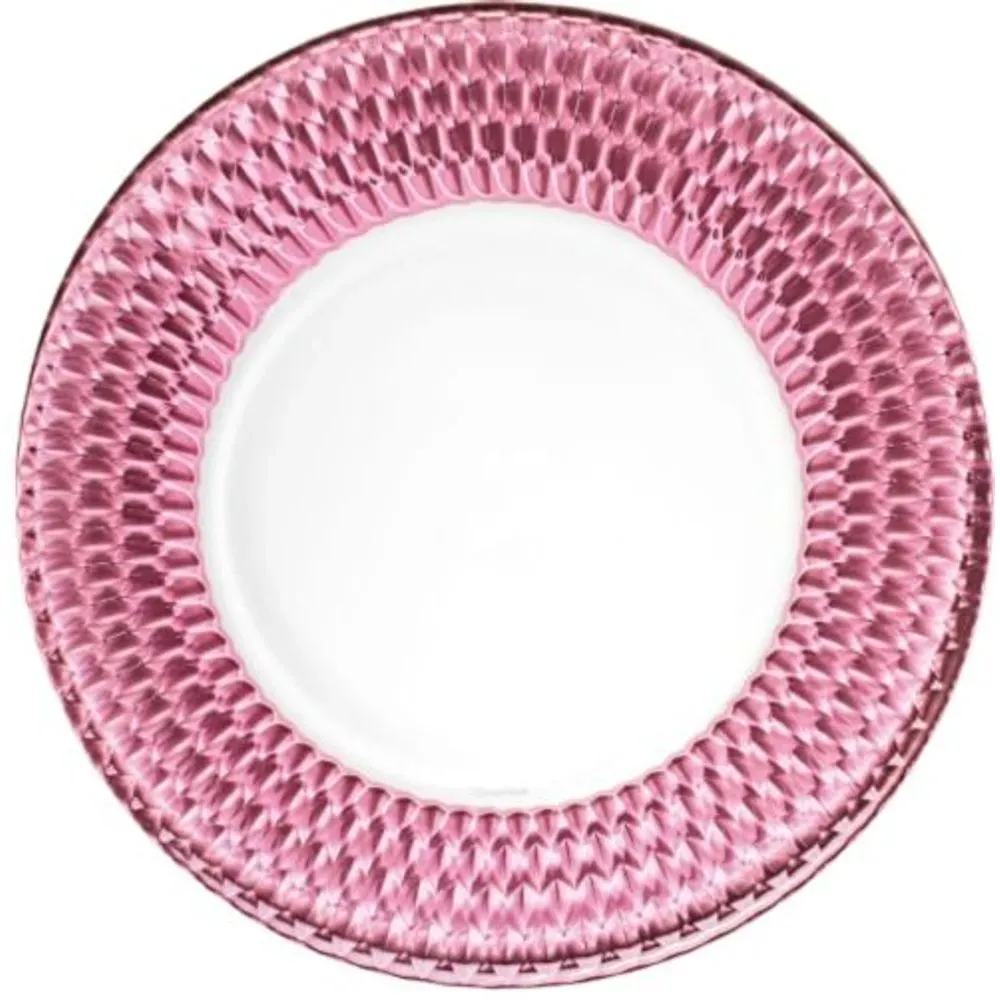 El plato sitio-base Rosa Boston de 32 cm de Villeroy & Boch es una pieza que combina tradición y sofisticación en un diseño atemporal. Elaborado en cristal, destaca por su ala en tono rosa con un delicado tallado en forma de rombos, que aporta textura, brillo y un juego de luz sutil sobre la mesa.