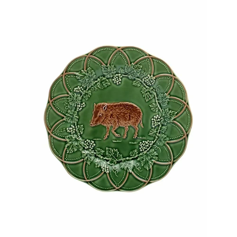 El plato Bosque Jabalí de 24 cm de Bordallo Pinheiro es una pieza que rinde homenaje a la tradición y la riqueza natural de los paisajes portugueses. Inspirado en la cultura de la caza, este diseño presenta un majestuoso jabalí rodeado de vegetación y bayas, evocando la belleza de los bosques y su vida silvestre.