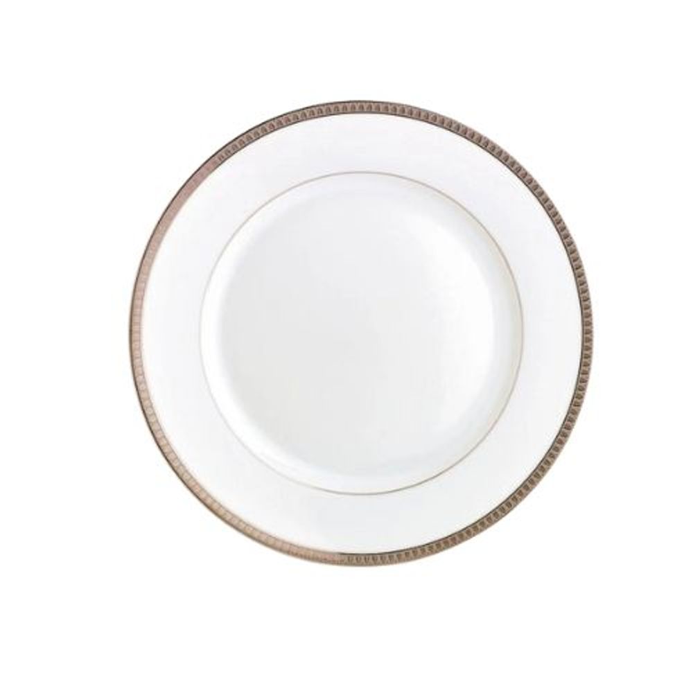 Christofle Plato Principal de 26 cms en Porcelana Limoges, decorado con filo ancho en Platino con hojas de palma y flores de loto, imágenes propias del Imperio Frances. La Colección Malmaison Platine es una propuesta que hace alusion al exquisito lujo frances