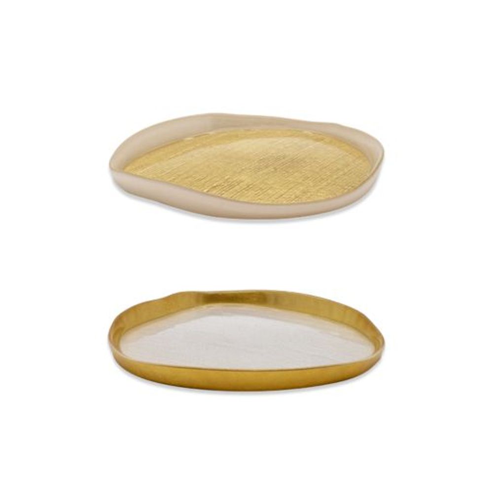 Set de 2 platos de cristal de 18 cm con un delicado acabado perla y detalles dorados. Su diseño sofisticado y luminoso aporta elegancia a la mesa, reflejando el estilo y la delicadeza de la vajilla italiana.