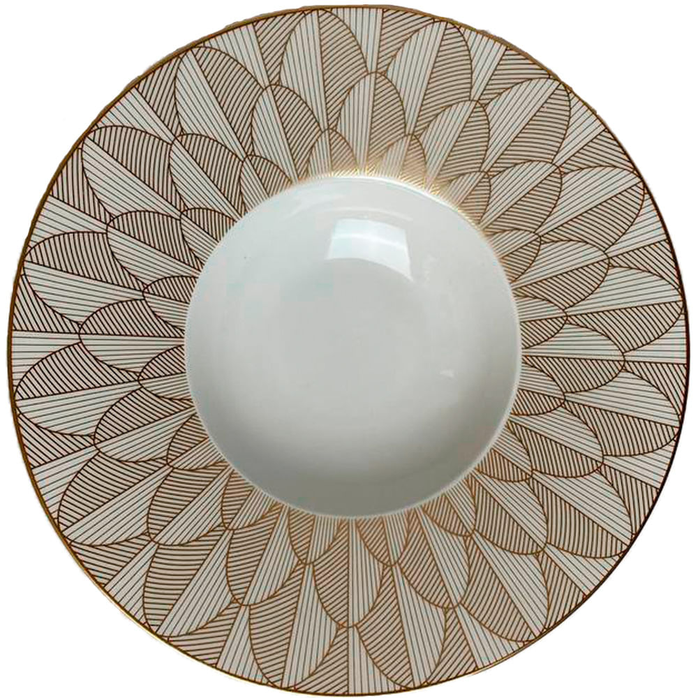 Plato Hondo Malmaison Imperiale Gold Rosenthal con borde de porcelana de Limoges y decoración dorada para una mesa elegante. La decoración reinterpreta los códigos de la colección.