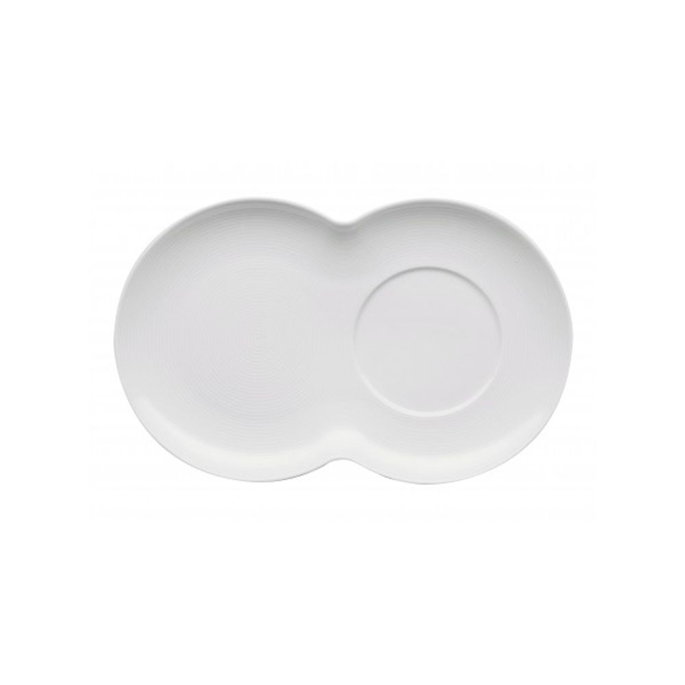 Plato para desayuno de 26 x 16 cms Porcelana blanca, ideal para poner un mug o un bowl para cereal y el espacio para un croisant Colección Loft con rayitas circulares sutiles bajo el esmalte, ideal como vajilla para un diario elegante, marca Rosenthal Thomas de Alemania