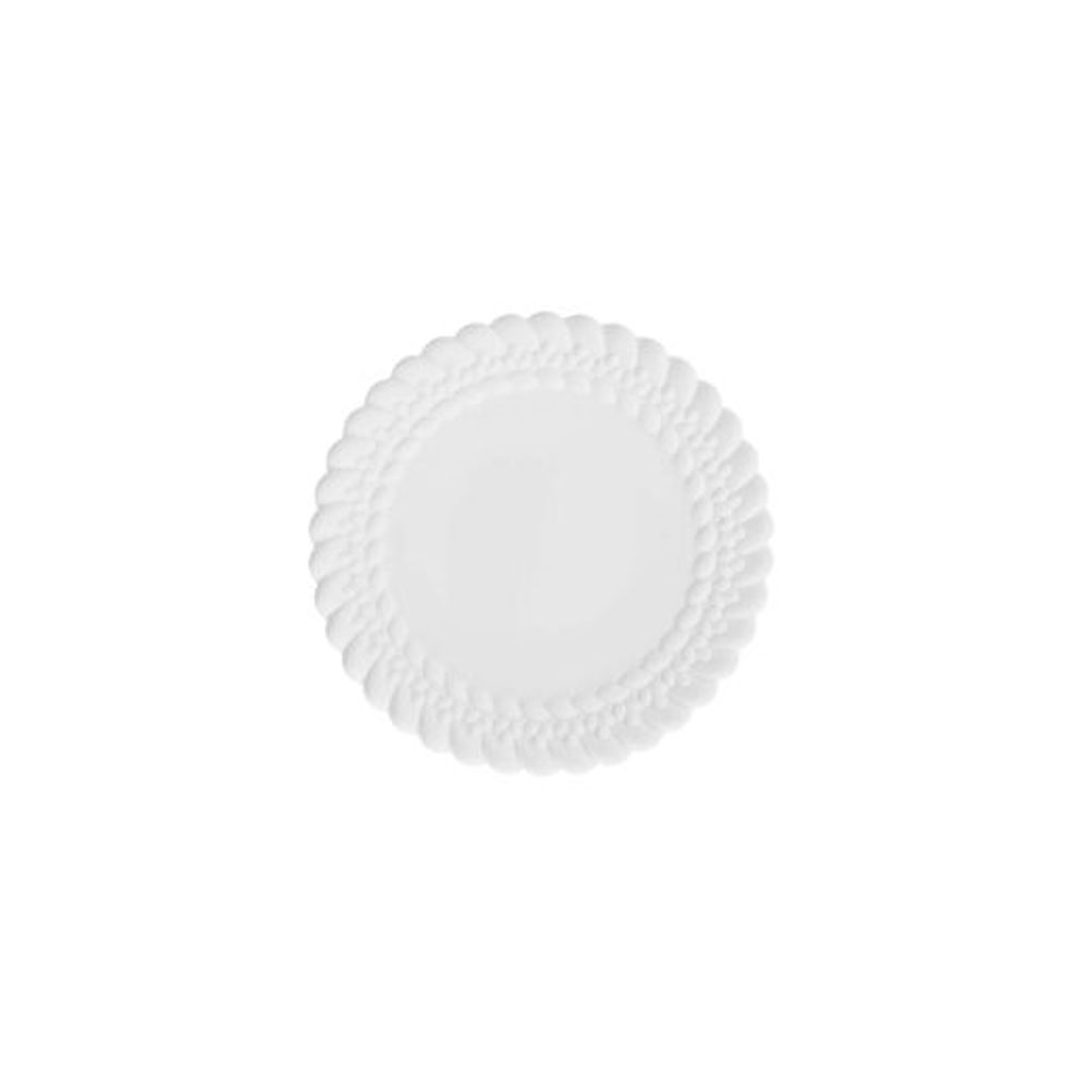 plato de pan en porcelana blanca. Su borde está delicadamente realzado con el icónico motivo trenzado en porcelana mate, creando un refinado contraste de texturas. Elaborado íntegramente a mano en Francia, destaca por su finura, densidad y transparencia: cualidades que distinguen a una porcelana verdaderamente excepcional.