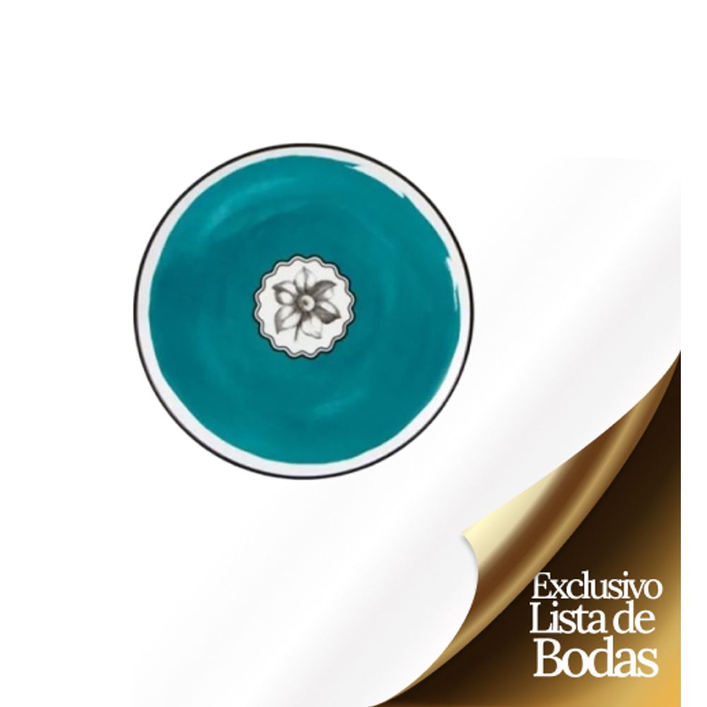 La colección Herbariae, nacida de la colaboración entre Vista Alegre y Christian Lacroix Maison, se inspira en la delicadeza de los herbarios antiguos. Este plato de postre de 23 cm presenta el color Azul Pavo Real (Peacock), diseñado para evocar una sofisticación natural en su mesa.