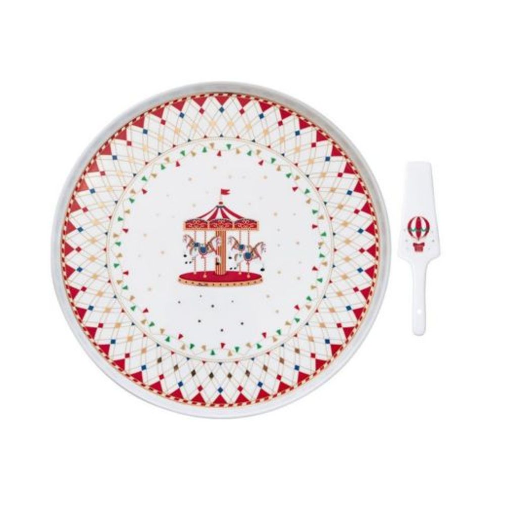 Plato para tarta 32 cm con servidor de porcelana en caja color CHRISTMAS WONDERLAND Productos aptos para microondas y lavavajillas