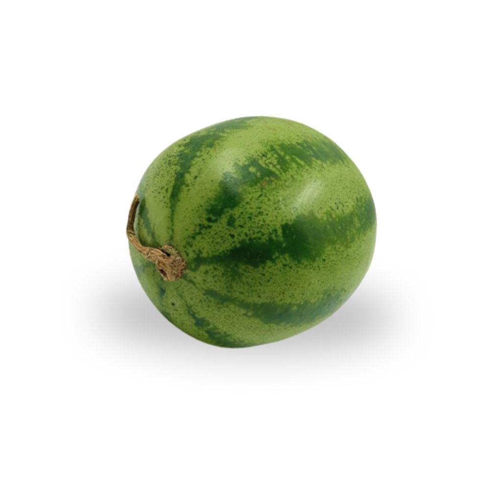sandía de acabado gourmet, con cáscara en tonos verde intenso y vetas naturales. Su interior rojo vibrante y textura detallada aportan un toque fresco y llamativo, ideal para realzar fruteros, bandejas o composiciones decorativas con un acento veraniego y atractivo.