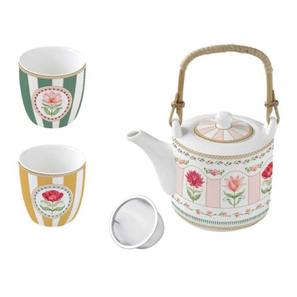 Tetera Con Infusor + 2 Tazas Flowery Vajilla Italiana