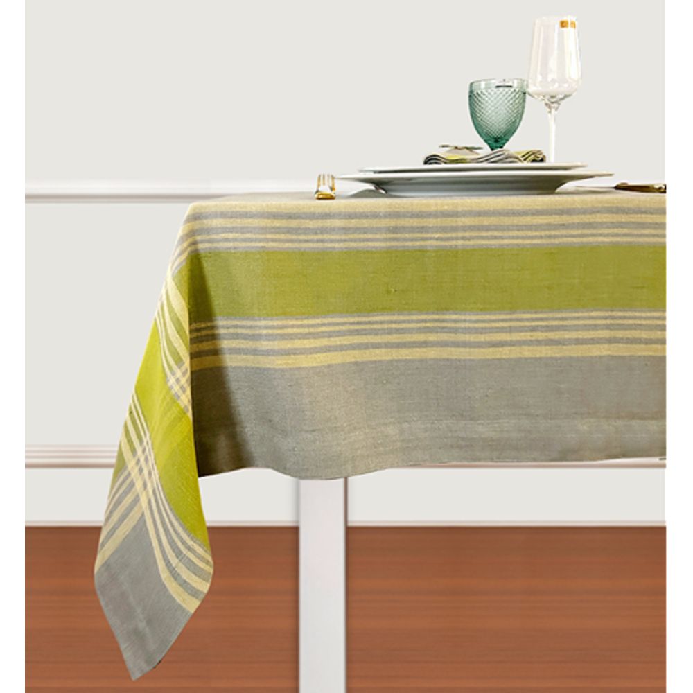 Mantel Lino Verde Y Gris 10 Puestos 170x310 Cm + Servilletas Carmina Villegas