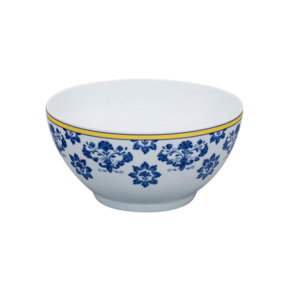 El Bowl Castelo Branco, 23x12 cm representa la culminación del diseño clásico de Vista Alegre. Inspirada en las colchas bordadas del siglo XVIII, esta pieza de gran formato destaca por su iconografía de inspiración oriental y europea, donde aves exóticas y motivos florales se entrelazan en un azul cobalto vibrante sobre la porcelana más blanca del mundo.
